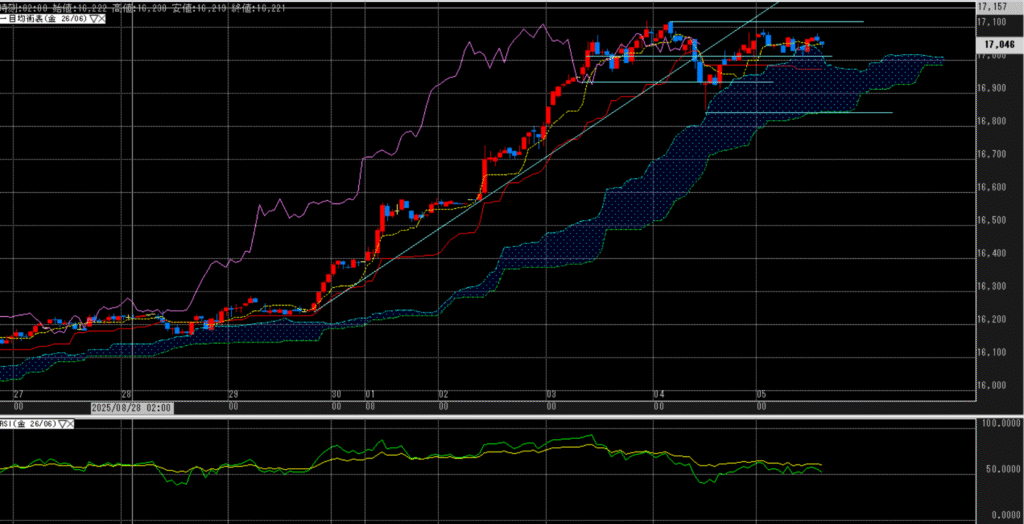 想定レンジ:16,980円(基準線)~17,120(史上最高値)