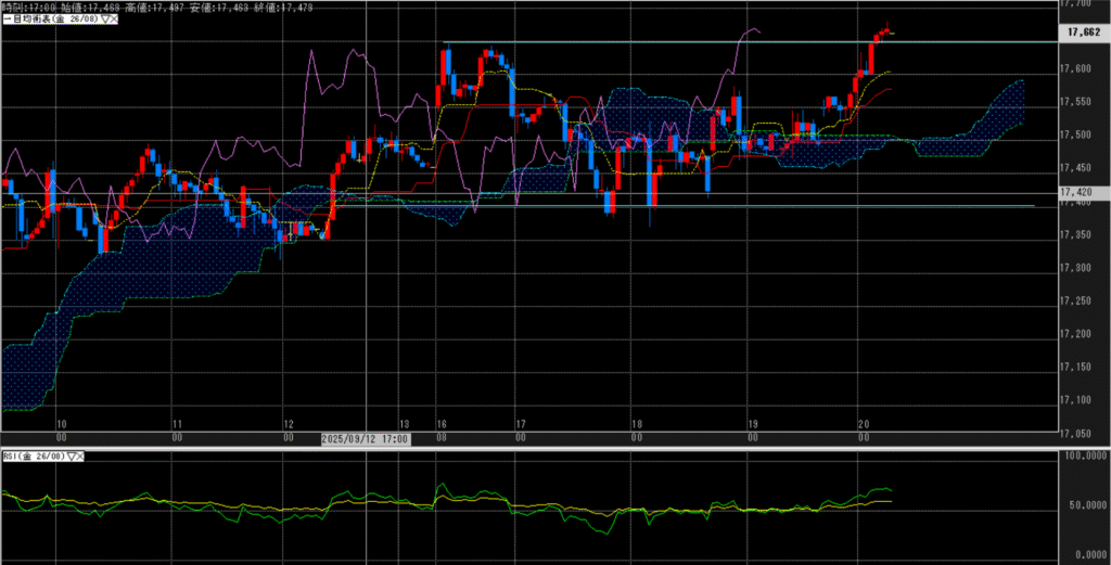 想定レンジ:17,350円(前回サポート)~17,660円(史上最高値)
