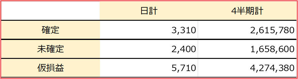 USD/JPY主導のせいか、換算値の鞘拡大は見られず、健康的ではある。