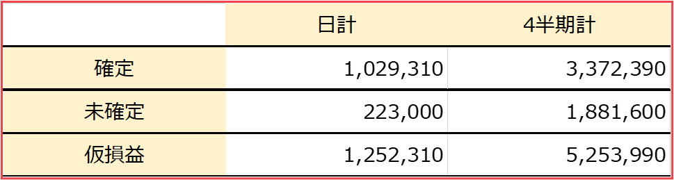 パフォーマンス、ロット(東京タイム終了後)