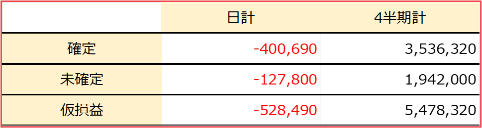 倍プッシュが復活するも、利食いに押されて、ある意味では想定内の下落、損失。