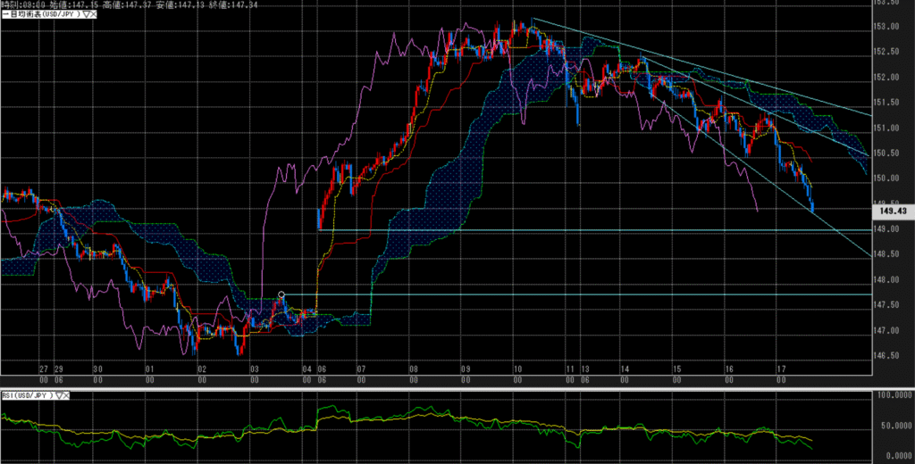 一目、MAのどちらも売り回転としか見えない。149円割れが視野に入っている?