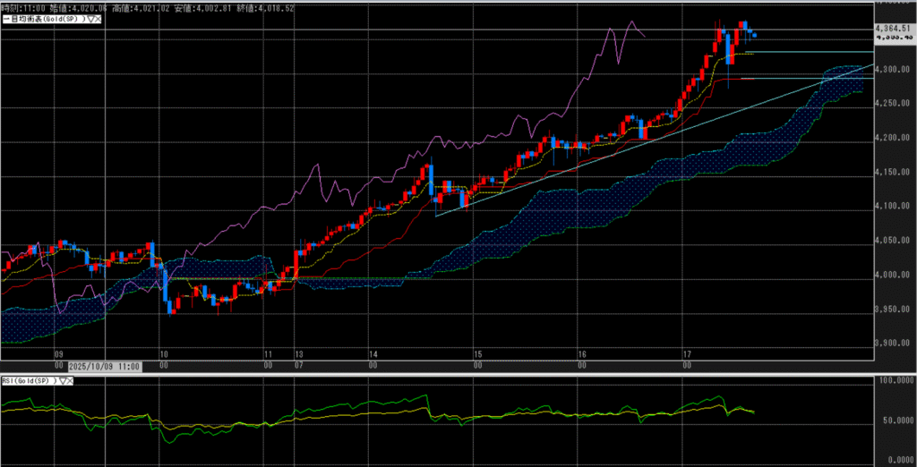 一方、金相場は1オンス=4,300ドル台と連日最高値を更新。米中摩擦や金融不安による逃避需要が強まり、ドル安・利下げ観測を背景に上昇基調を維持している。為替では149円台後半が下値の焦点、150円70銭が戻りの上値抵抗とみられる。