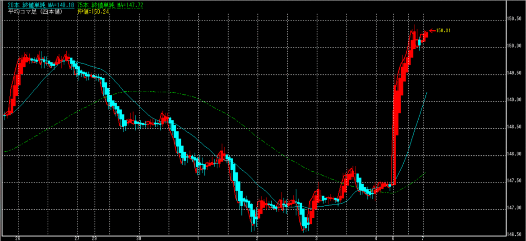 3(火)円売り・ドル買い優勢植田総裁の慎重発言、ISM弱含み147円前半 → 147.7円付近
