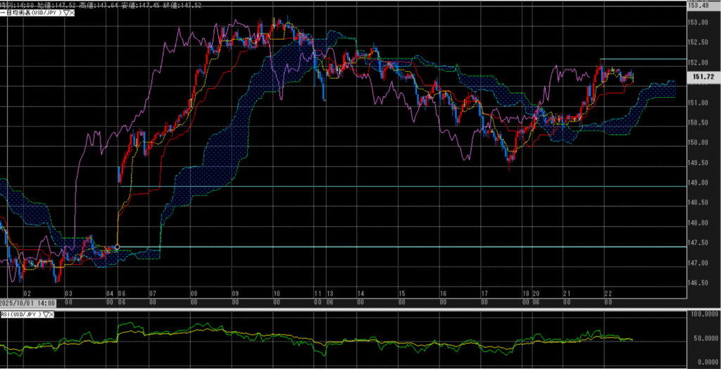 一応は三役好転で、雲の流れも悪くはない。MA平均足も同じく。但し、レンジ内の話ではある。