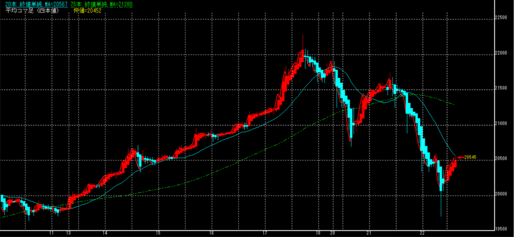 MA平均足では、戻り売りの位置を形成中としか見えず。