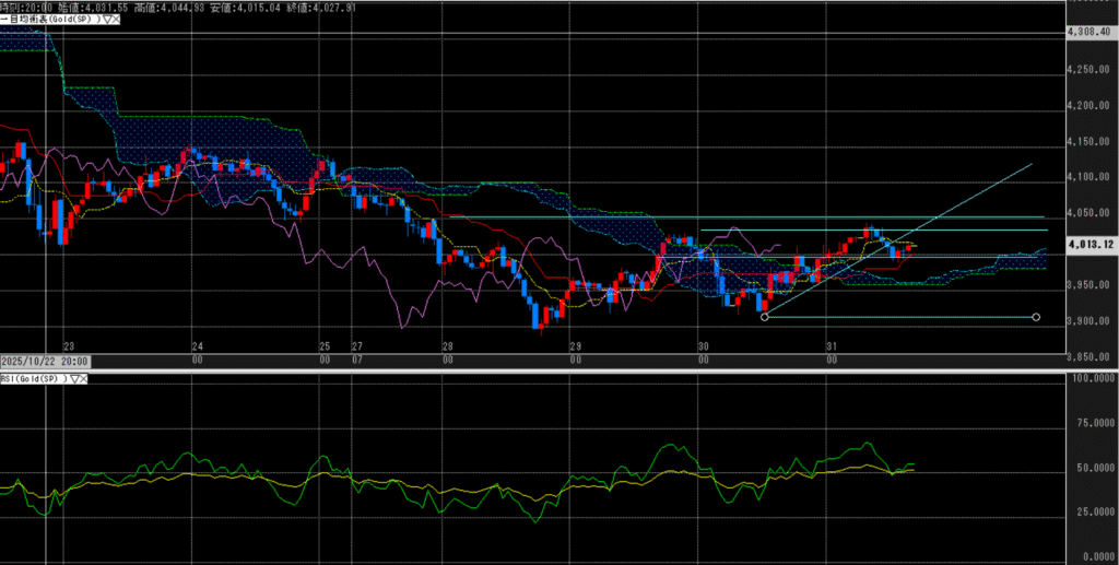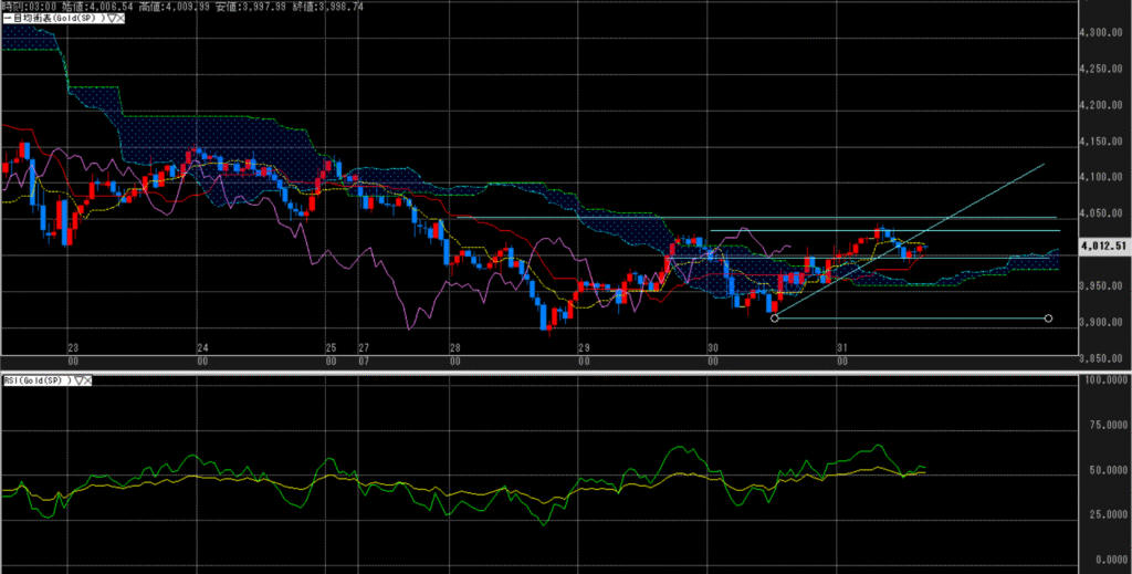 | ドル建て金 | 次のレジスタンスを試す、UP | 4,000ドル~3,930ドル |