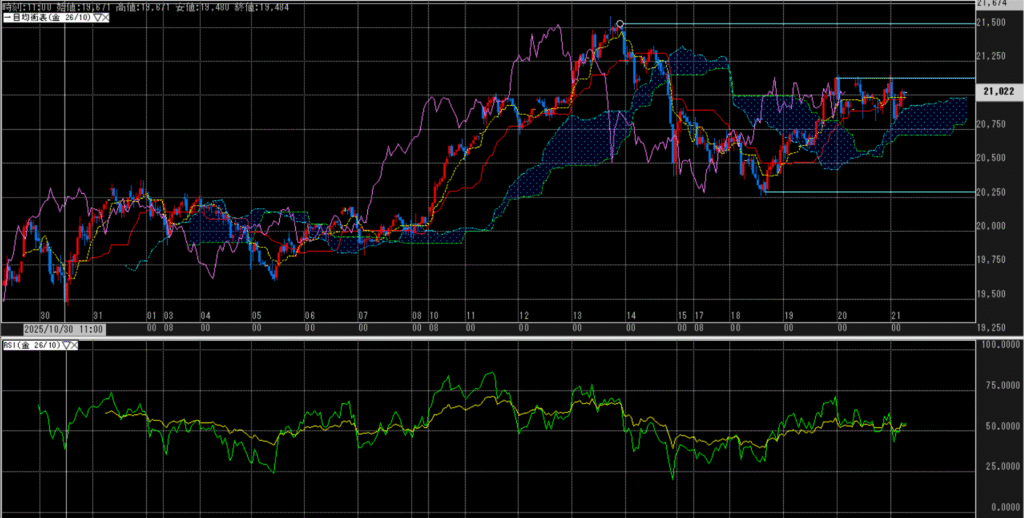 日足のRSIでは、75%超としており、若干の行き過ぎ感はある。しかし、崩れそうな気配はない。